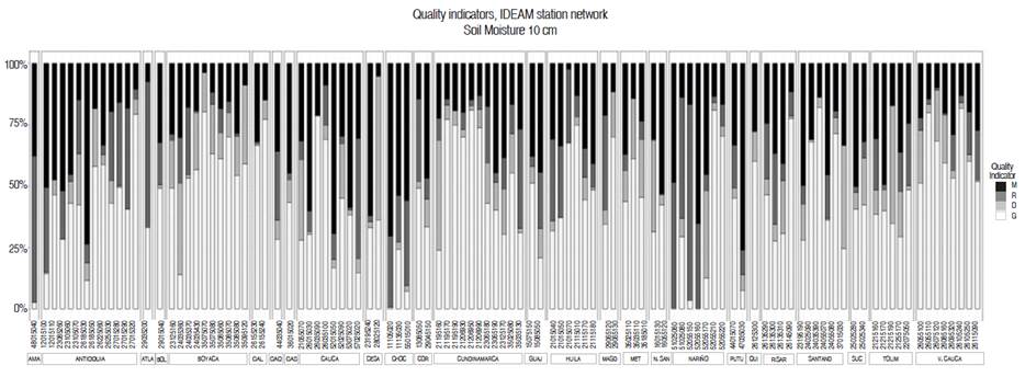 Figure 2:: Quality indicators for a depth less than 10 cm, measured in the IDEAM Automatic Agrometeorological Stations Network.