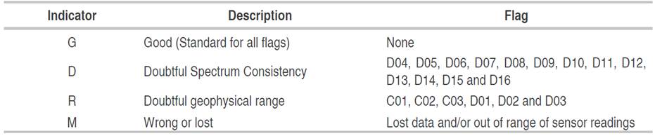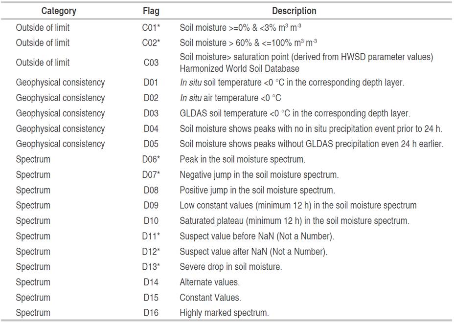 C03, D03, and D05 flags are used when information is only available from a soil moisture sensor; therefore, estimates from numerical or satellite models are needed for synthetic data on precipitation, air, and soil temperatures.