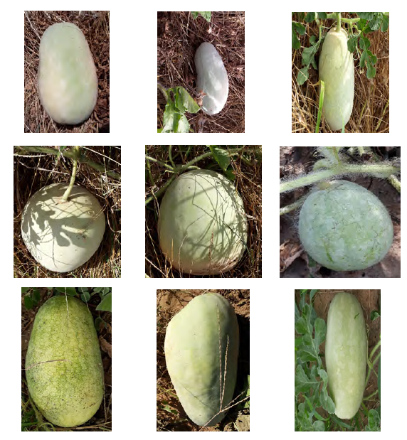 FIGURA 6: Diferentes formatos do fruto de melancia forrageira (Citrullus lanatus var. citroides)