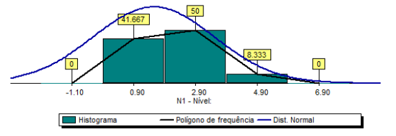 A legislação brasileira permite que a contagem de bactérias mesófilas oscile entre 105 e 106 para que a carne moída bovina esteja apta para a comercialização (Brasil 2019). As bactérias mesófilas apresentaram 31,11% dos dados levantados próximos a 1,13 log UFC.g-1 de carne fresca (Figura 1). Essa maior frequência se distanciou dá média observada (3,09 [Tabela 2]), sendo 2,73 vezes inferior. Tal observação pode ser justificada pela elevada amplitude. É praticamente impossível conseguir contagens iguais a zero de microrganismos mesófilos e psicrotróficos, devido a que não existe um padrão determinado para esses grupos em alimentos frescos (Oliveira et al. 2008).