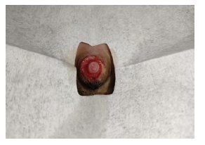 Fentanil was prescribed as pre-medication (5µg/kg, IV), followed by a dose of propofol as an inducing agent (2 mg/kg, IV). During the procedure, an oxygen mask was used, and anesthesia was provided through sevoflurane. A catheter number 24 was introduced through the preputial orifice (figure 2). Using the catheter as a guide, a small incision was done in the preputial orifice going to the abdominous, and from this incision, a circular extraction of preputial tissue was carried out. A simple interrupted suture between the mucosa and the preputial skin was done (figure 3). A couple of hours after the procedure, the patient urinates as usual. Three days after the patient is brought back into consultation. The owner says the patient spends more time than usual in the sandbox and does not urinate. Physical examination evinces a granulated tissue blocking the movement of the penis (figure 4). It is established that from the circular resection of tissue that initially occluded the penis, the cicatrization process produced a new obstruction in the preputial orifice. The patient undergoes surgery once again with the purpose of solving the relapse. Granulated tissue is removed and most of the preputial tissue is resected (figure 5). After the surgery, ampicillin/sulbactam (20 mg/kg, IV, twice a day) and tramadol (2 mg/kg, IV, once a day) were prescribed as a treatment. Right after the surgery, the patient can urinate, and four days after the patient is discharged since there is no sign of clinical symptoms. Two weeks after, the patient is brought for a medical check, where it can be appreciated that the tip of the penis is exposed and there are no signs of the disease (figure 6). After seven months of following the patient's process, there is a minor exposure of the penis and there are no signs of the disease. Telephonic monitoring is carried out for a year, and the owner does not report any signs of the initial pathology, except for some occasional licking.