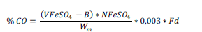 % CO: porcentaje de carbono orgánico. VFeSO4: volumen (mL) de sulfato ferroso gastado en las muestras de suelos. B: volumen del sulfato ferroso gastado en el blanco.