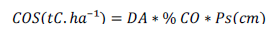 Para determinar el almacenamiento de CO, se utilizó el procedimiento descrito por Andrade et al. (2003), el cual toma en cuenta valores de densidad aparente, carbono orgánico y profundidad del suelo: