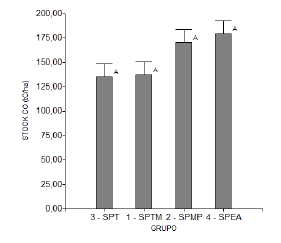 FIGURA 3: Comportamiento del stock de carbono del suelo en los grupos de sistemas productivos bovinos del municipio de Guatavita.
