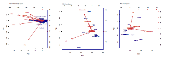FIGURE 1: PCA of antibiotics by species, enrofloxacin, and oxitetracycline.