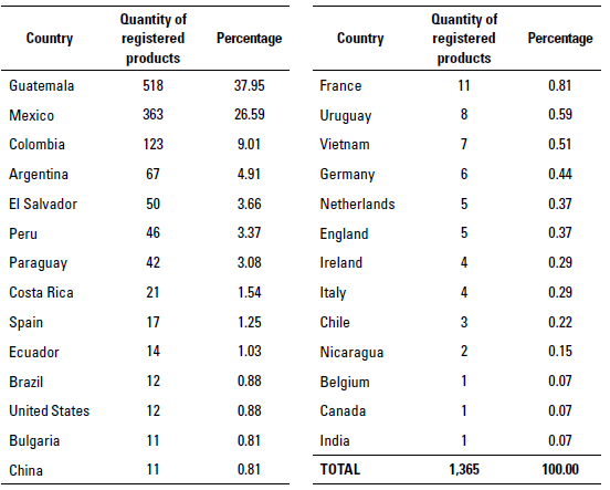 According to Carrillo et al. (2011), Mexico is the main exporter of pharmaceutical products to Guatemala, which is consistent with the findings made in this study, where that country has a quarter of the registered products for veterinary use that have at least one antibiotic as an active ingredient.