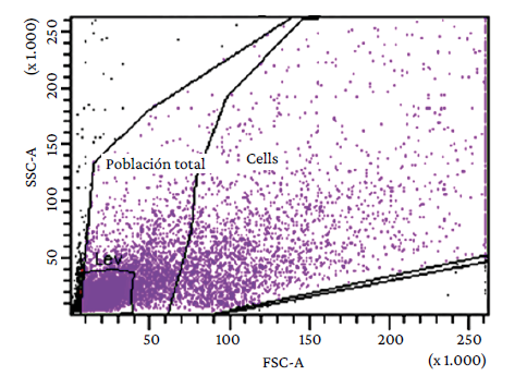 Both gastric tumor cells and non-tumor gastric tissue cells were analyzed by flow cytometry. Cells were disaggregated using serial passages performed with sterile 5mL syringes and 15, 19 and 21 GA needles, and a 0.5mL insulin syringe with 31 GA needle (BD Ultra-fine™). Cells obtained in suspension were analyzed with the FACScanto II™ flow cytometer (Becton Dickinson, Franklin Lakes, NJ, USA), and data were analyzed with FACSDiva™ version 8.0 software (Becton-Dickinson, Franklin Lakes, NJ, USA).