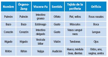 Tabla 1: Zang-Fu.