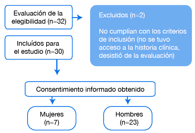 De 32 pacientes que cumplieron con los criterios de elegibilidad, 30 fueron incluidos en este reporte (Figura 2).