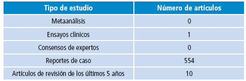 Tabla 1: Resultados de búsqueda bibliográfica en PubMed de acuerdo a tipo de estudio.