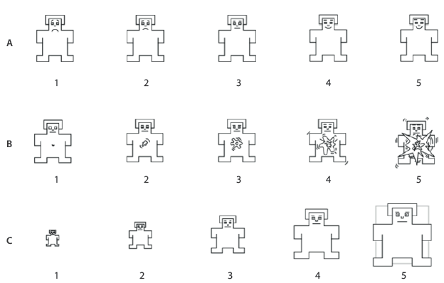 Figure 2: Self-Assessment Manikin. a) pleasure, b) arousal, c) dominance.