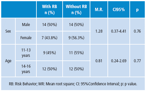According to the RB questionnaire, the experimental group had 21 (47.7%) participants, who showed high risk behavior indicators in one or more of the five assessed dimensions (Table 1).