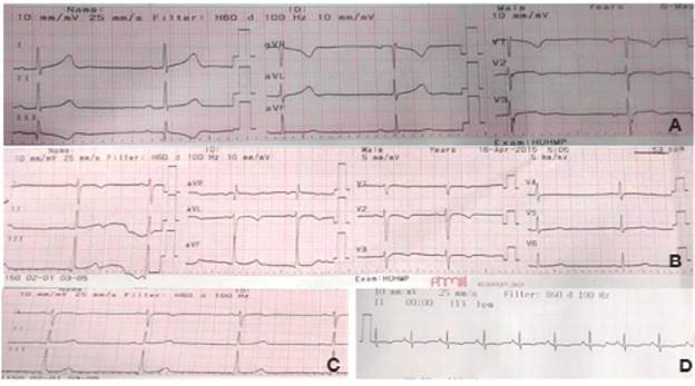 Figura 1: Electrocardiogramas de pacientes con miocarditis por dengue.