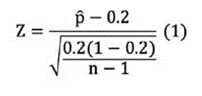 Where Oi. is the observed value of individuals that are classified in B+ and Ei is the expected number of individuals in B+ if the 20% goal was met. Said trial statistics allows verifying the same hypothesis obtained with the parametric test described above and follows a χ2 distribution with 1 degree of freedom, if only one test is made.