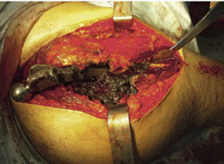 Figure 3: THA revision caused by AL (see the dark necrotic tissue).