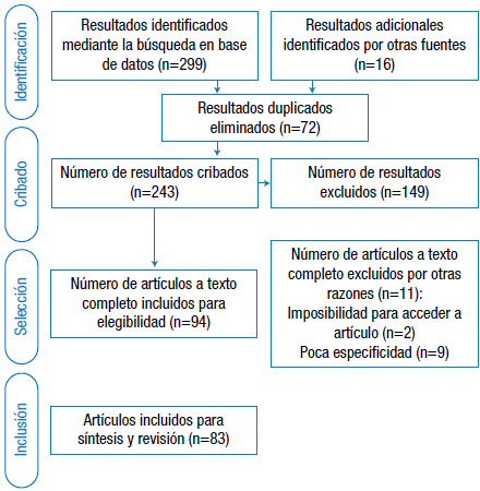 Se realizó una búsqueda en la base de datos PubMed que arrojó 299 resultados; se revisaron las bibliografías de los artículos y se consultaron las referencias pertinentes. Al final se seleccionaron 83 artículos.