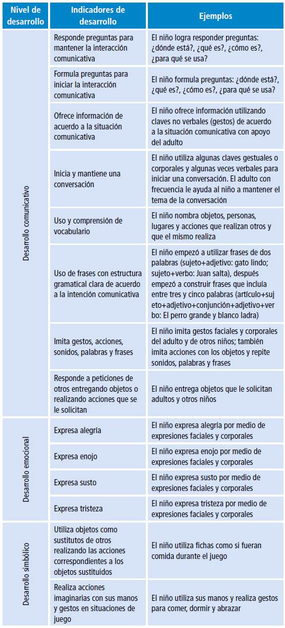 Tabla 5: Indicadores de desarrollo comunicativo, emocional y simbólico.