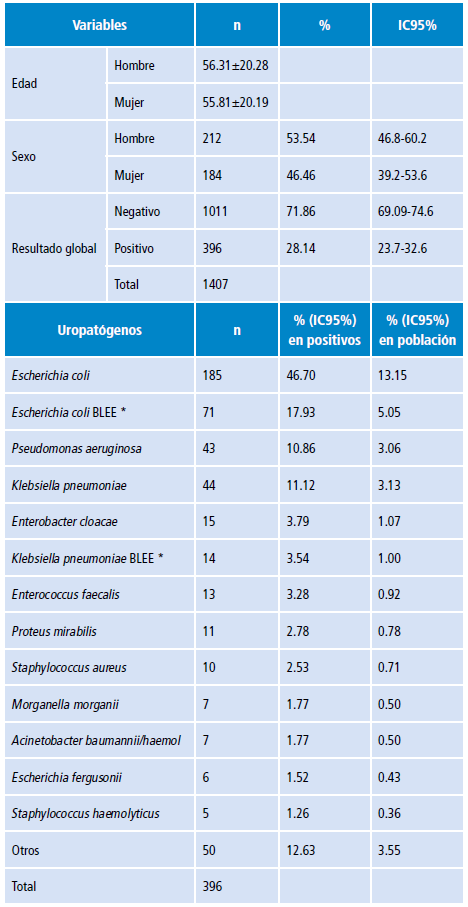 Los urocultivos positivos se incluyeron en su totalidad, pues se pretendió determinar la prevalencia de la enfermedad y de los patógenos aislados más frecuentemente responsables de la misma.