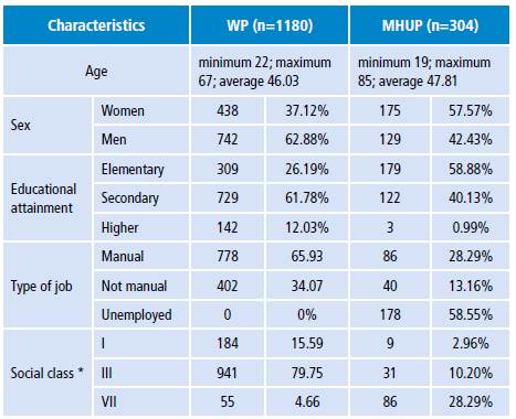 The population sample included 1 180 workers and 304 patients from a MHU. The characteristics of both samples are described in Table 1.