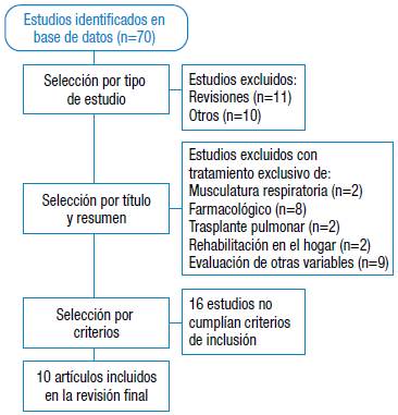 De los 70 estudios encontrados en la búsqueda, 10 cumplieron los requisitos para ser incluidos en la revisión (Figura 1).