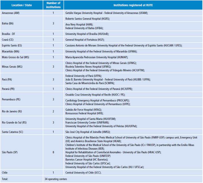 Estudio documental y retrospectivo-descriptivo. El grupo de interés especial fue creado a través de la Red Universitaria de Telemedicina, que consiste en una red de alta velocidad que conecta hospitales universitarios y centros de enseñanza de salud en Brasil. El grupo incluye 34 centros operativos registrados en 15 estados brasileños y una universidad de Chile.