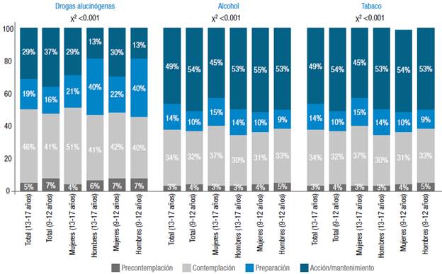 Stages of behavior change and their correlation with alcohol, tobacco and drug use in schoolchildren aged 9 to 17 in Bogotá D.C., Colombia