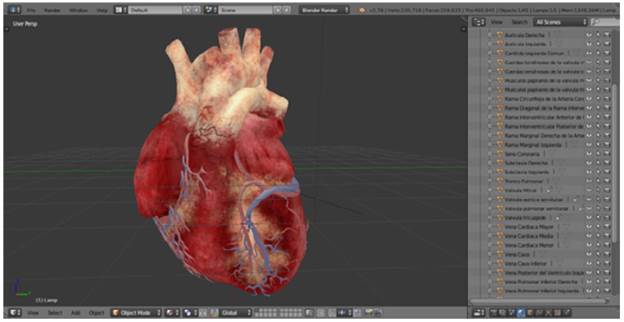 This study was formulated from the perspective of a student when realizing that the hours in the dissection hall were not enough to study and review the structures, because that is the only place where teaching with a three-dimensional approach can occur, achieving greater spatial location with respect to orientation, relationship and nomenclature. In this context, the following questions arose: if the basis of the anatomy begins with dissection, why not using software with the structures found? Can traditional teaching in cardiac anatomy be optimized?