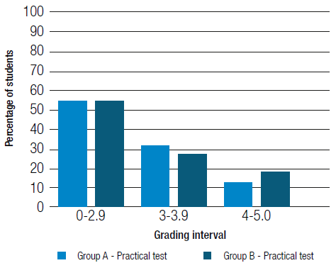 Figure 3: Results of the students in the practical test.