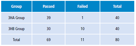 Table 2: Passing and failing grades obtained in the theoretical test.