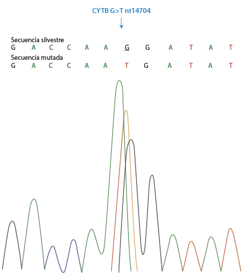 Figura 1: Mutación en estado heteroplásmico encontrada en el gen CYTB.