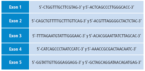 Para SOD1 se flanquearon los cinco exones con los iniciadores que se muestran en la Tabla 1.