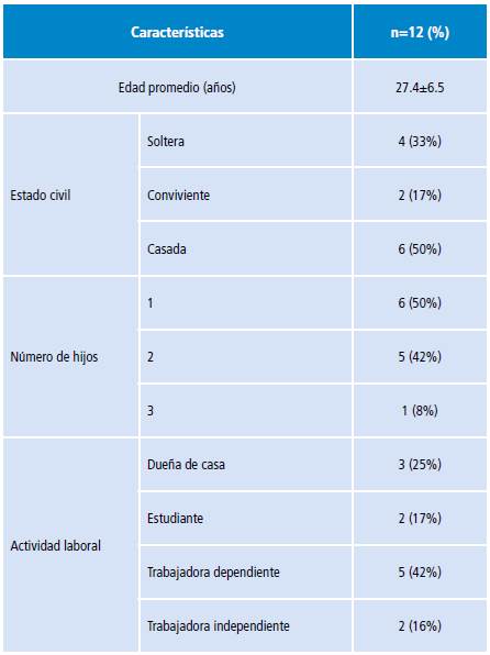 Se entrevistó a 12 madres cuyas características se presentan en la Tabla 1.