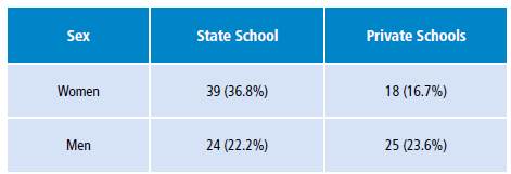 The study population was composed of 106 adolescents aged between 11 years and 5 months and 14 years and 6 months, of which 63 were attending a state school, and the other 43, 2 private schools; all of them located in Santiago de Chile, Chile (Table 2). Participants were selected through convenience sampling.