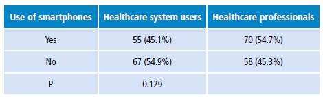 La muestra exploratoria (n=250) estuvo conformada por profesionales sanitarios (55 médicos y 77 estudiantes de medicina) y usuarios del servicio sanitario (122 pacientes) de España. Entre las similitudes se detectó el apoyo al uso del smartphone y entre las diferencias, el valor otorgado al diagnóstico realizado por las tecnologías frente al formalizado por los profesionales.