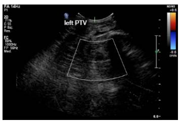 Figure 1: Doppler ultrasound: left posterior tibial vein (PTV) thrombosis.