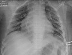Figure 4: Chest x-ray: diffuse parenchymal/alveolar opacities.