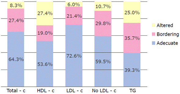 Figure 1: Percentage of children classified according to the National Heart, Lung, and Blood Institute's lipid profile cut-off points.
