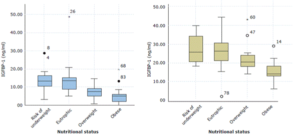 Figure 2: Box plot according to nutritional status and the IGFBP-1 and IGFBP-2 variables.