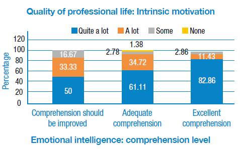 Figure 1: Correlation between the emotional intelligence subscale and level of comprehension, and the professional quality of life subscale and intrinsic motivation.