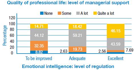 Figure 2: Correlation between the emotional intelligence subscale and level of regulation, and the managerial support subscale of the professional quality of life questionnaire.