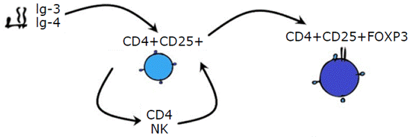 Increase in CD4, CD25 and Foxp3