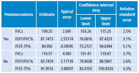Table 2: Estimates of spirometry values for pneumoconiosis diagnosis.