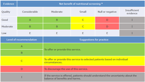 Table 1: Degrees of recommendation according to level of certainty and net benefit.