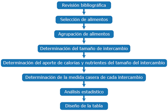 Figura 1: Diseño metodológico para la construcción de la tabla de intercambios de alimentos para uso en pediatría.