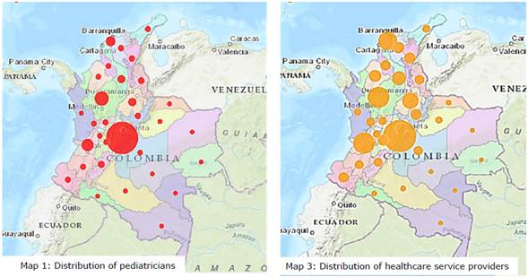 The distribution of pediatricians in Colombia depends more on the dynamics of healthcare service providers than on the health care needs of children in the different regions of the country. Therefore, the implementation of new policies aiming at achieving a better distribution of the available resources is required to strengthen local authorities and to regulate the provision of pediatric care services throughout the country according to the multiple health needs of each region.