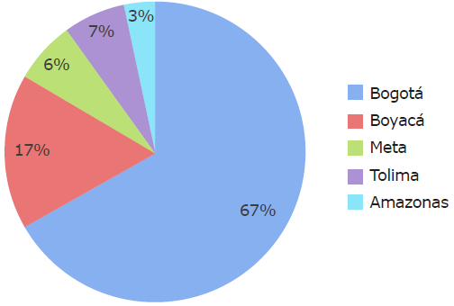 30 patients with a median age of 10 years were analyzed (range: 1-16 years); the majority were males (60%) and lived in Bogotá at the time of diagnosis (67%) (Figure 1).
