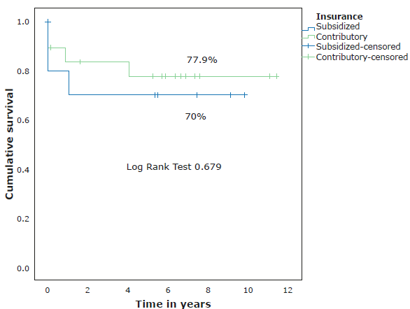 Figure 2: Survival according to the social security scheme of the participants.