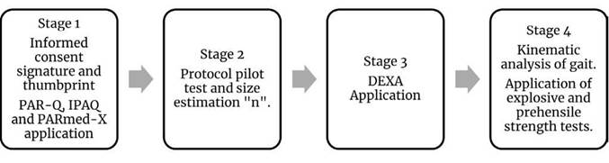 Firstly, the International Physical Activity Questionnaire (IPAQ), the Physical Activity Readiness Questionnaire (PARQ) ,21 and the Physical Activity Readiness Medical Examination (PARmed-X)22 were applied to assess health status and level of physical activity.