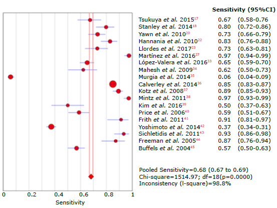 Figure 18: Forest plot of sensitivity of the LFQ questionnaire for the diagnosis of chronic obstructive pulmonary disease.