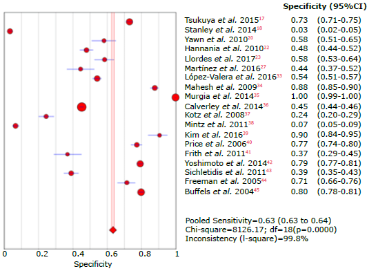 Figure 19: Forest plot of specificity of the LFQ questionnaire for the diagnosis of chronic obstructive pulmonary disease.